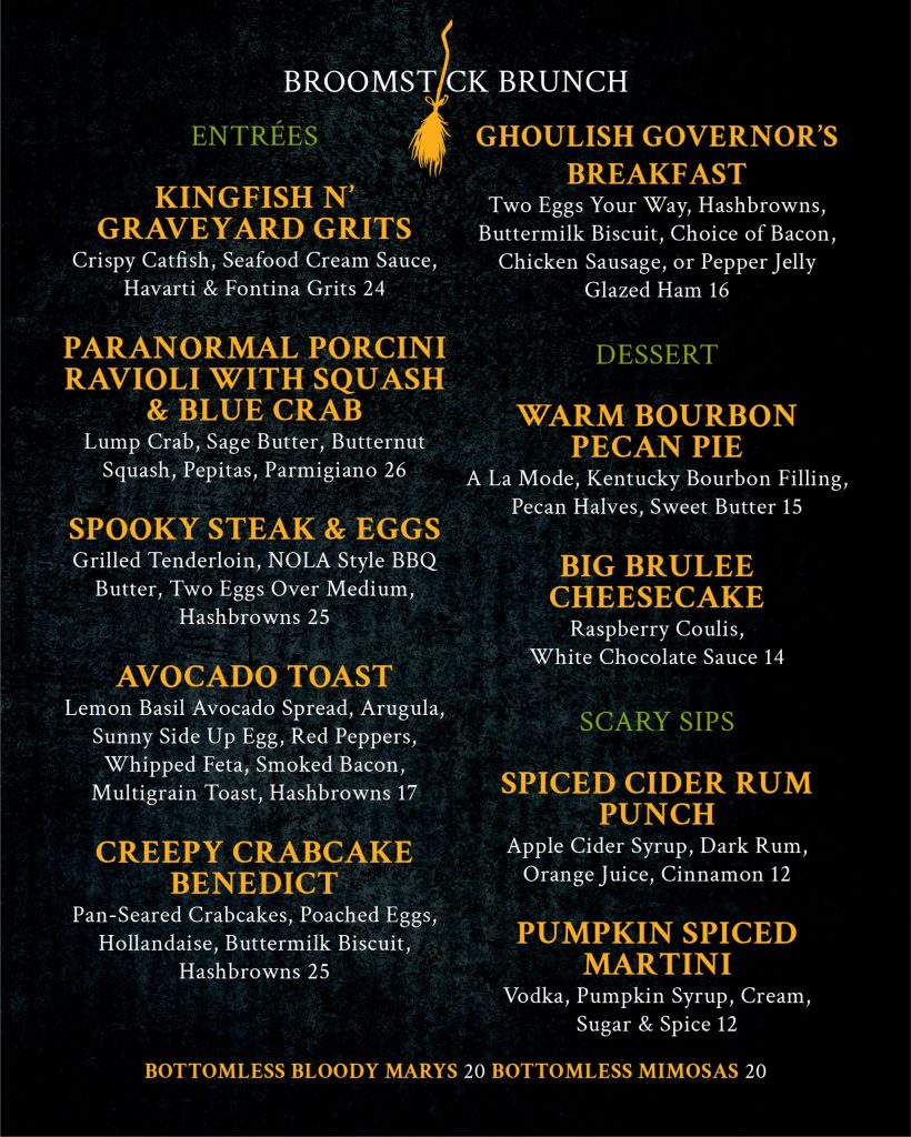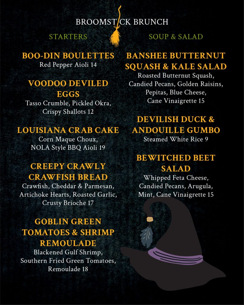 Grab your coven and fly on over for a bewitching experience at our Broomstick Brunch! We’re serving up a special Halloween-themed menu full of spooky bites and devilishly good treats, plus creepy-cute cocktails that are to die for.
